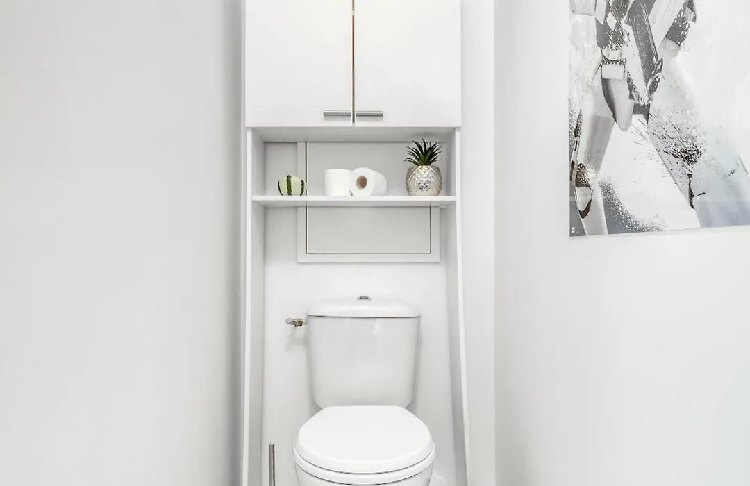 This apartment looks over the street. The property offers guests the convenient feature of towels in the bathroom.